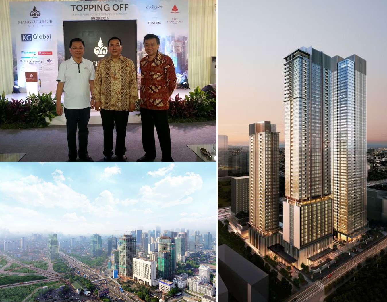 Mangkuluhur City, a 280,000 square meter mixed-use complex in the heart of Jakarta's CBD comprising of grade A commercial offices, the 5-star Regent Hotel, two Apartment Towers, the refurbished Crown Plaza Hotel, and a Lifestyle Dining Zone, remains true to its commitment to be one of Jakarta's premium property developments in the coming years. First to be topped-off on the 9th of September 2016 is the 33-storey Office Tower 1. The event was attended by Mr. Harry Gunawan, President Director of PT Kencana Graha Optima (left), Mr. Hutomo Mandala Putra, High Commisioner of PT. Wisma Purnayudha Putra (middle) and Mr. Doddy Tjahjadi, Managing Director of PTI Architects (right). The said event also marked the signing formalities of Fraser Residences as the operator and PTI Architects as the appointed architect and interior designer of the Serviced Apartments.